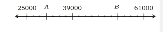 49 .बिन्दु A और B नीचे दिखाई गई नंबर रेखा पर संख्याओं का प्रतिनिधित्व करते हैं :